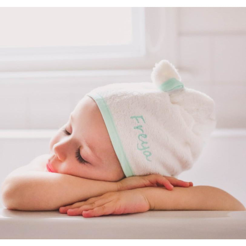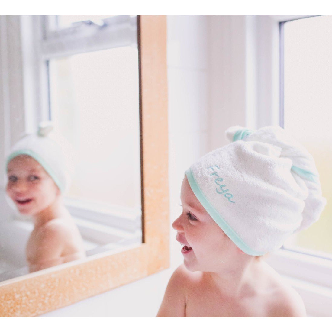 You just put the cuddle twist towel on the child's head, twist at the back and secure into the stretchy loop on top. Twist, tuck and go!